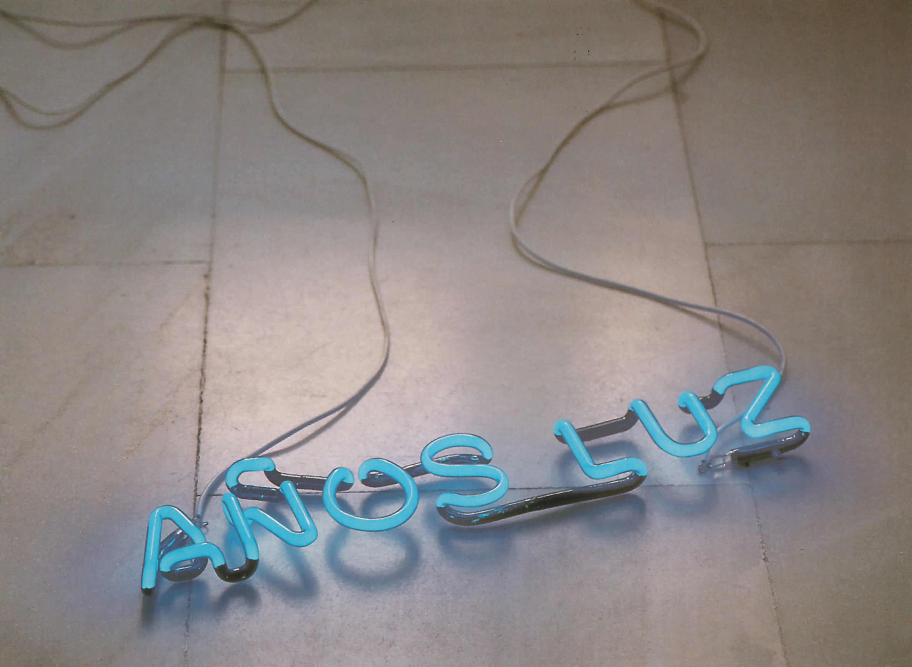 En Años luz, se perciben la ironía y la sutil poética que caracterizan la producción de la artista: un sencillo letrero lumínico que, sin embargo, abre un abanico de interpretaciones en torno a la distancia, la memoria y las contradicciones del lenguaje.